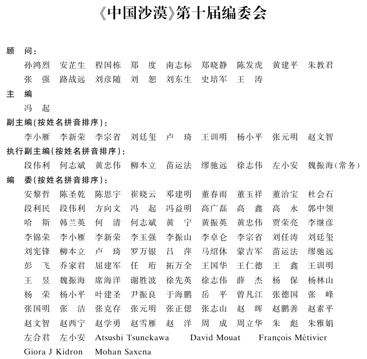 《中国沙漠》第九届编委会自2013年成立,在王涛主编带领下取得了显著成效。2025年底,由王涛研究员提议,编辑部启动第十届编委会组建工作,调研相关期刊编委会组成并广泛征求意见。2026年1月,主办单位中国科学院西北生态环境资源研究院、中国治沙暨沙业学会、中国地理学会共同批准了第十届编委会组成方案,任期2026—2030年。