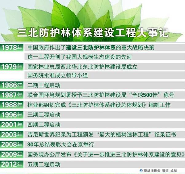 以邓小平同志为核心的第二代领导人,于1978年批准兴建被称为世界生态工程之最的“三北”防护林体系建设工程,1979年正式通过了将每年的3月12日定为植树节的决议,1981年通过了《关于开展全民义务植树运动的决议》,1982年成立中央绿化委员会,1983年各地深入扎实开展绿化祖国运动,1984年通过了《中华人民共和国森林法》。