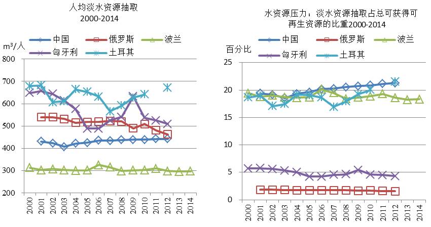 图7 2000-2014年“一带一路”部分国家人均淡水资源抽取与水资源压力