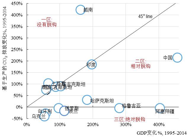 1、温室气体排放与经济发展的关系密切