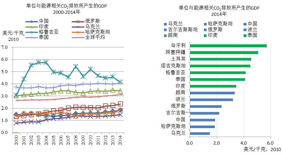 图2 部分“一带一路”国家与能源相关单位CO2排放所生产的GDP
