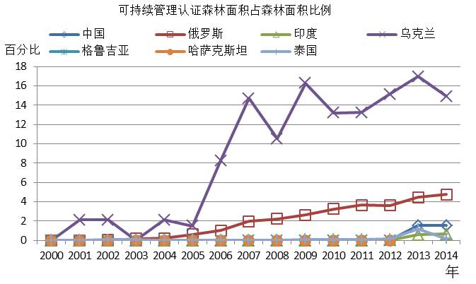 图6 2000-2014年部分国家森林可持续认证情况