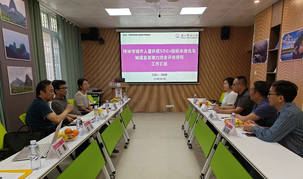 在桂林示范区座谈会上,广西师范大学可持续发展创新研究院/丽江流域景观资源保育与可持续利用重点实验室主任马姜明教授介绍了研究院和重点实验室依托课题开展的相关研究以及取得的成果。桂林市科技局四级调研员郑寒剑、桂林市可持续发展促进中心主任朱宗伟详细介绍了示范区近年来的建设情况。在交流阶段,周海林研究员就进一步深挖桂林市景观资源潜力,增强研究院在桂林市国家可持续发展议程创新示范区建设中的支撑作用等进行了交流。高峰就实验室承担的本课题的子专题研究进展进行了交流,并讨论了后续推进计划。