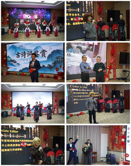 舞蹈、小品、诗朗诵、歌曲演唱等节目精彩纷呈、相继上演,现场喝彩声鼓掌声不绝于耳,充满欢声笑语。由中心领导班子组成的“民乐天团”献上器乐合奏《金蛇狂舞》,悠扬的旋律与欢快的节奏交相辉映,瞬间点燃现场气氛;战略情报研究部的小品《野狼甄嬛显摆秀》笑点不断、包袱一箩筐;区域发展研究部带来的舞蹈串烧《改革春风吹满地+眉飞色舞+失恋阵线联盟》热情洋溢、活力四射;科技咨询服务部的歌曲串烧表演秀《水手》创意满满、亮点频出;资源系统服务部和规划发展部的舞蹈秀《上春山》和《敬业阵线联盟》幽默逗趣、高潮迭起;文献信息服务部的独唱《思念陪着鸿雁飞》歌声优美,深情诉说着跨越山川湖海的思念故事;期刊编辑出版部的吉他弹唱《小美满》热辣滚烫,自编自导的小品《兰哈顿科技期刊大赏:谁主沉浮》脑洞大开、奇趣欢乐,引得观众笑声连连;舞蹈《雪山的约定》裙摆飞扬、舞姿优美;诗歌朗诵《兰州1949》和《家之韵·梦之歌》深情悠远、温暖人心,表达了大家对未来的美好憧憬和坚定信念。中心工作人员各显神通、默契配合,不仅展现了中心职工的多才多艺,更体现了团队的凝聚力和向心力。