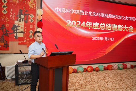 1月21日下午,中国科学院西北生态环境资源研究院(以下简称西北研究院)文献情报中心召开2024年度总结表彰大会,西北研究院党委书记、副院长张长春出席会议并讲话,西北研究院相关管理部门负责人出席会议。会议由中心副主任任珩主持,中心全体职工参加会议。